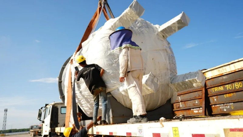 近日,裝載著中偉印尼南加里曼丹產業基地首批設備的貨輪,從國內欽州港起航后歷經12天海上航行靠泊項目園區碼頭,標志著項目正式從土建施工邁入新的階段,為項目建成投產按下“加速鍵”。